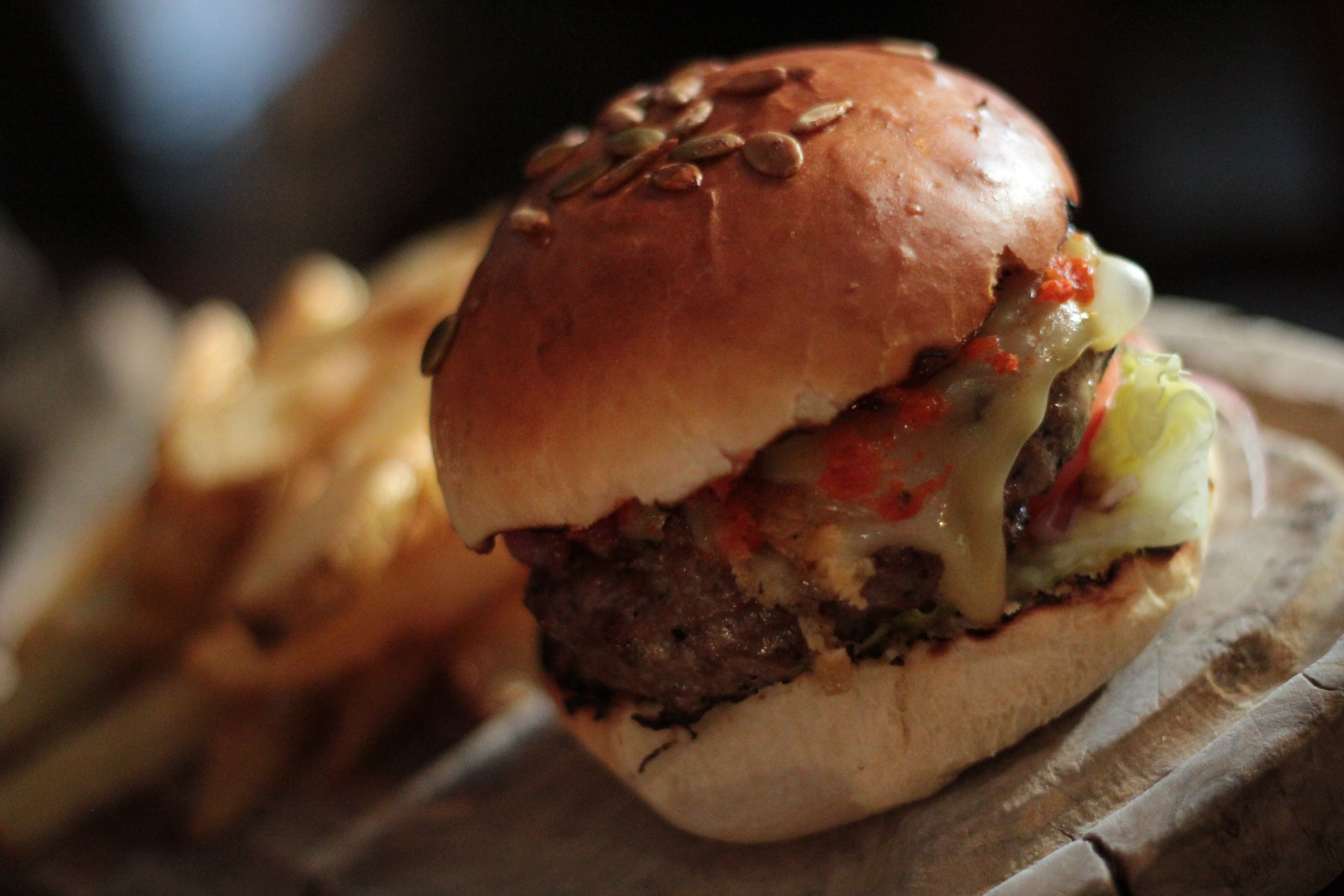 Head chef Chad has put a lot of time and care into crafting this burger and is very proud with the finished result – and rightfully so. From the light, freshly baked bun to the zing of the red pepper relish combined with the intensity of the smoked cheese, right down to the beautifully seasoned patty, this burger is one not to miss!