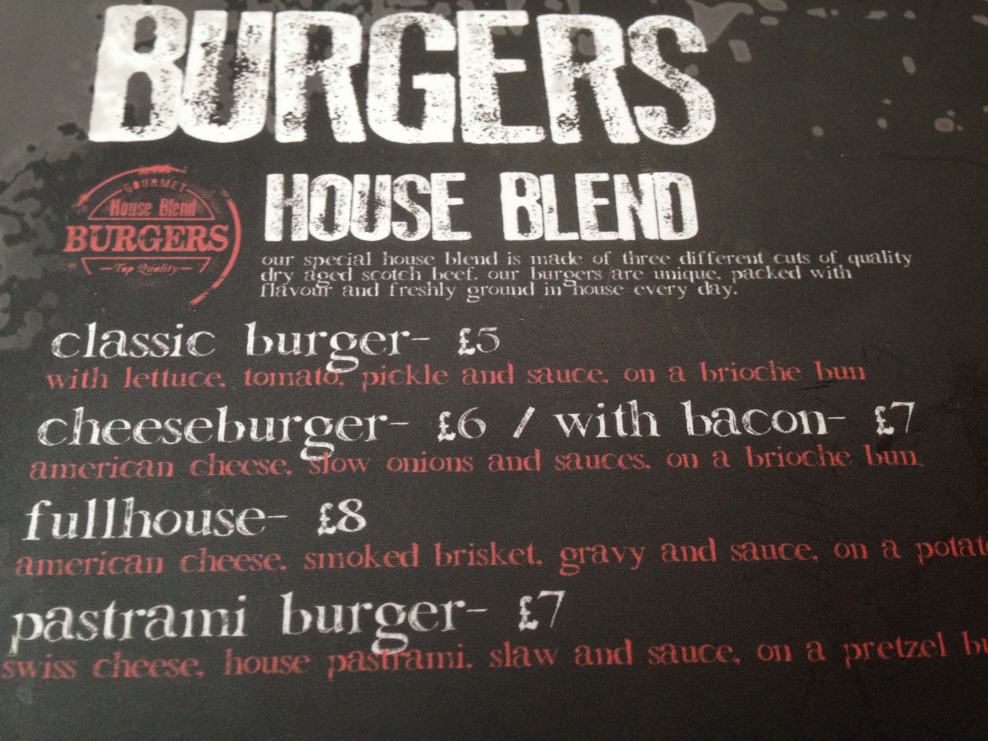 The burger menu is made up of three sections – house blend, red label and black label, with the red and black label offerings being made from more premium cuts of meat. There’s a few other options available too such as a couple of hot-dogs, sandwiches and various sides.
